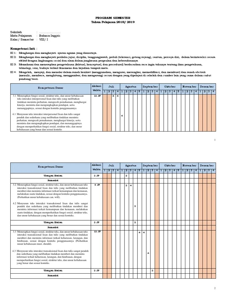 Program semester ppkn k13 kelas 8 smp revisi terbaru. Perangkat pembelajaran berupa program semester mapel bhs indonesia tingkat smp/mts khusunya kelas ix semester 1 dan 2 kurikulum 2013 tahun 2021/2022. Soal uas bahasa indonesia kelas 8 semester 2 2020. Menjadi pedoman untuk menyusun promes. Tahun pelajaran 20202021 pada kesempatan ini saya bagikan contoh program semester promes kelas 3 .